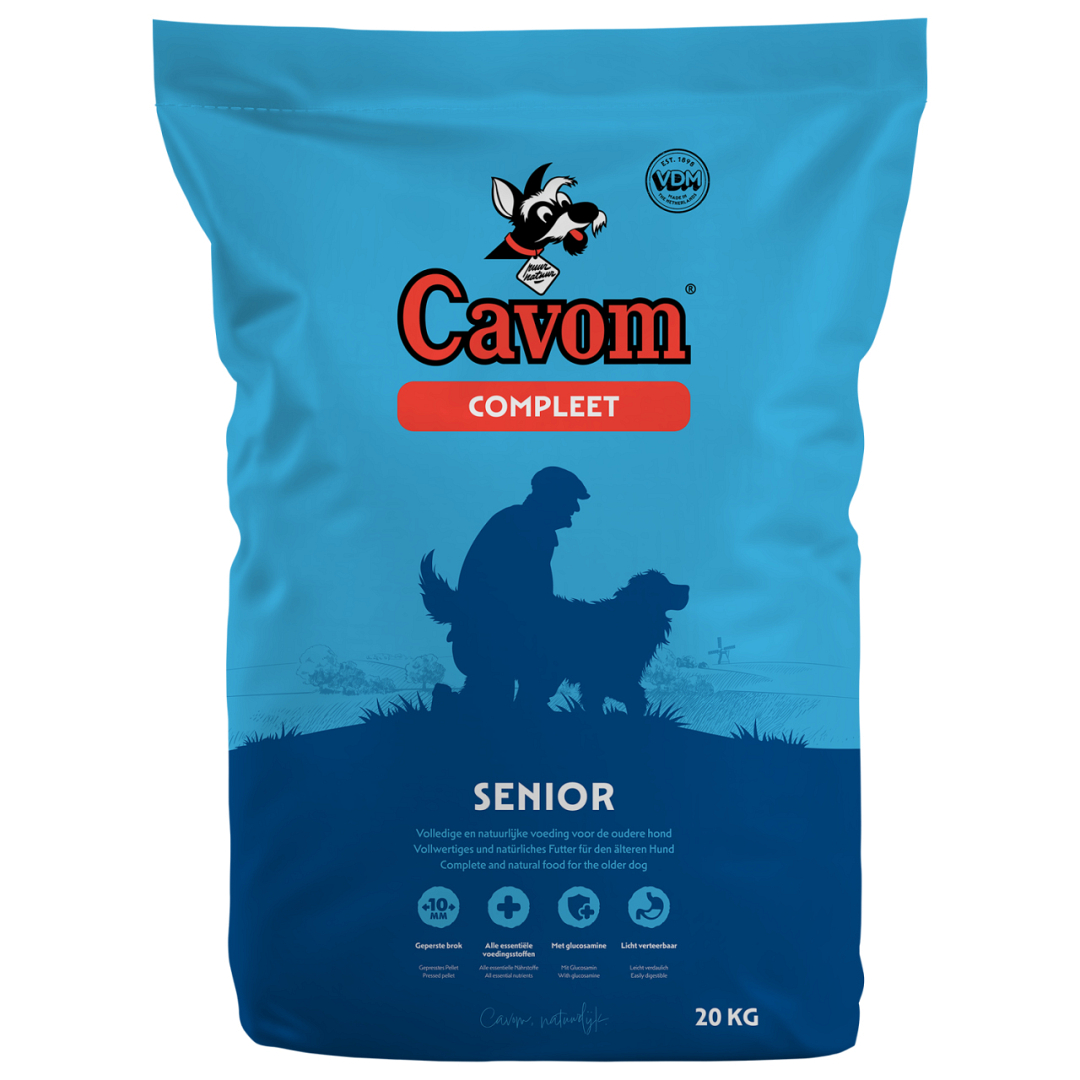 Cavom Compleet Senior bevat naast rundvet en diverse olin, ook dierlijke eiwitten uit rund en schapenvlees en plantaardige eiwitten van goede kwaliteit. Dit alles om een mooie balans te krijgen in de voeding. Het voer is verrijkt met glucosamine voor oudere honden ter ondersteuning van de gewrichten.