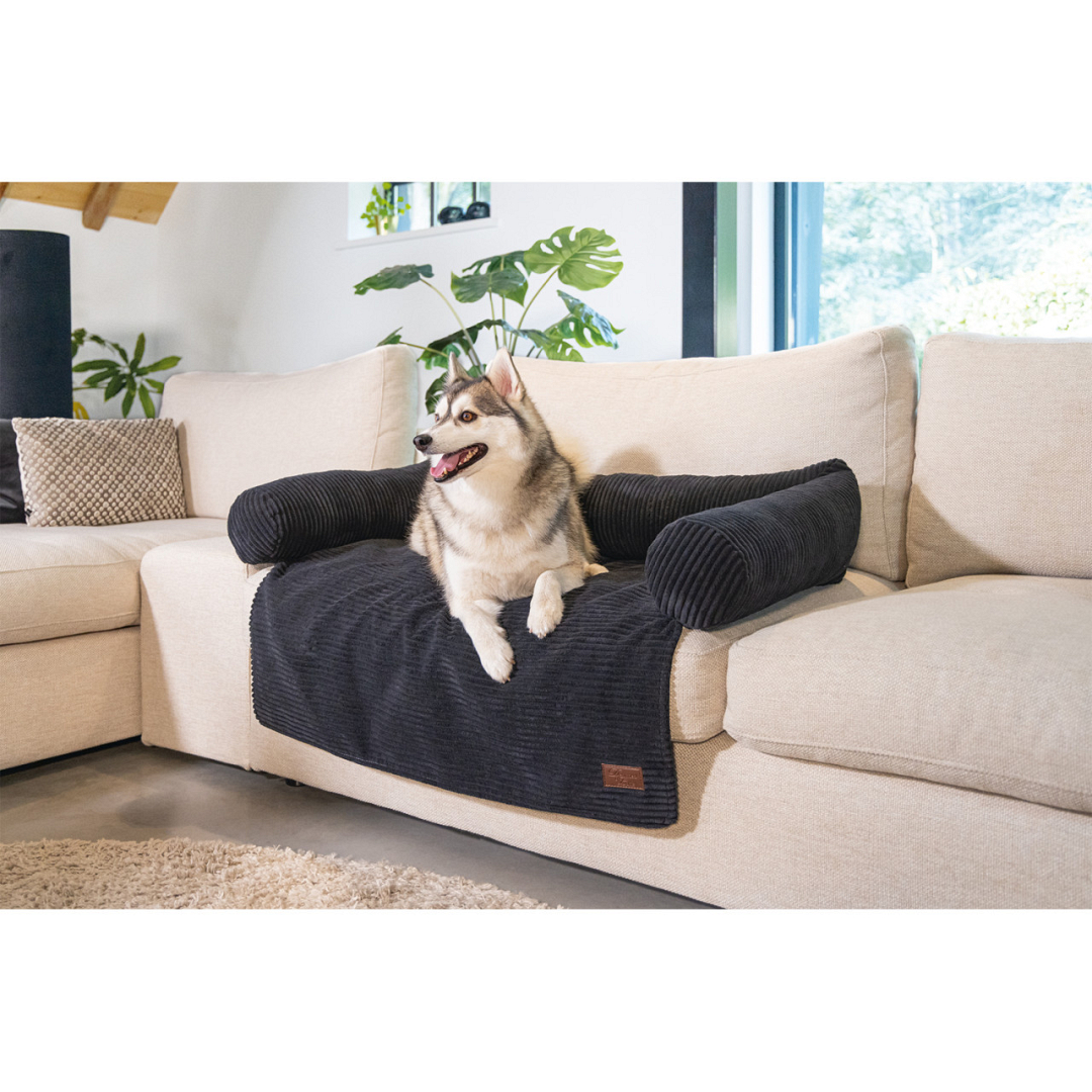 Het kussen is eenvoudig neer te leggen op de bank. Het verlengstuk zorgt ervoor dat ook de voorzijde van de bank beschermd wordt. De opstaande randen van het kussen, gevuld met schuim, geven jouw hond een fijn beschermd gevoel en bakeren tegelijkertijd de rest van de bank af. Zo kun je jouw hond aanleren dat hij of zij alleen op het kussen op de bank mag liggen.
