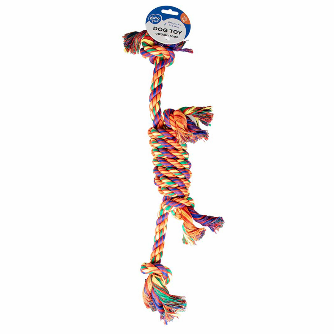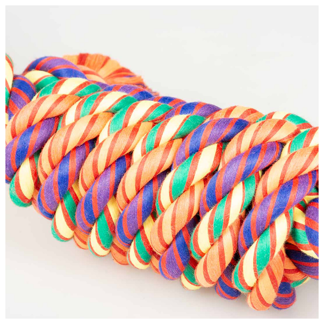Dit kleurrijke touw van Duvo+ is speciaal ontworpen om jouw hond urenlang speelplezier te bieden. De knopen zorgen voor extra grip tijdens het trekken en spelen, terwijl het stevige materiaal ervoor zorgt dat het speeltje lang meegaat. Bovendien helpt het katoenen touw bij het schoonhouden van het gebit van je hond door de natuurlijke flossende werking van de vezels.