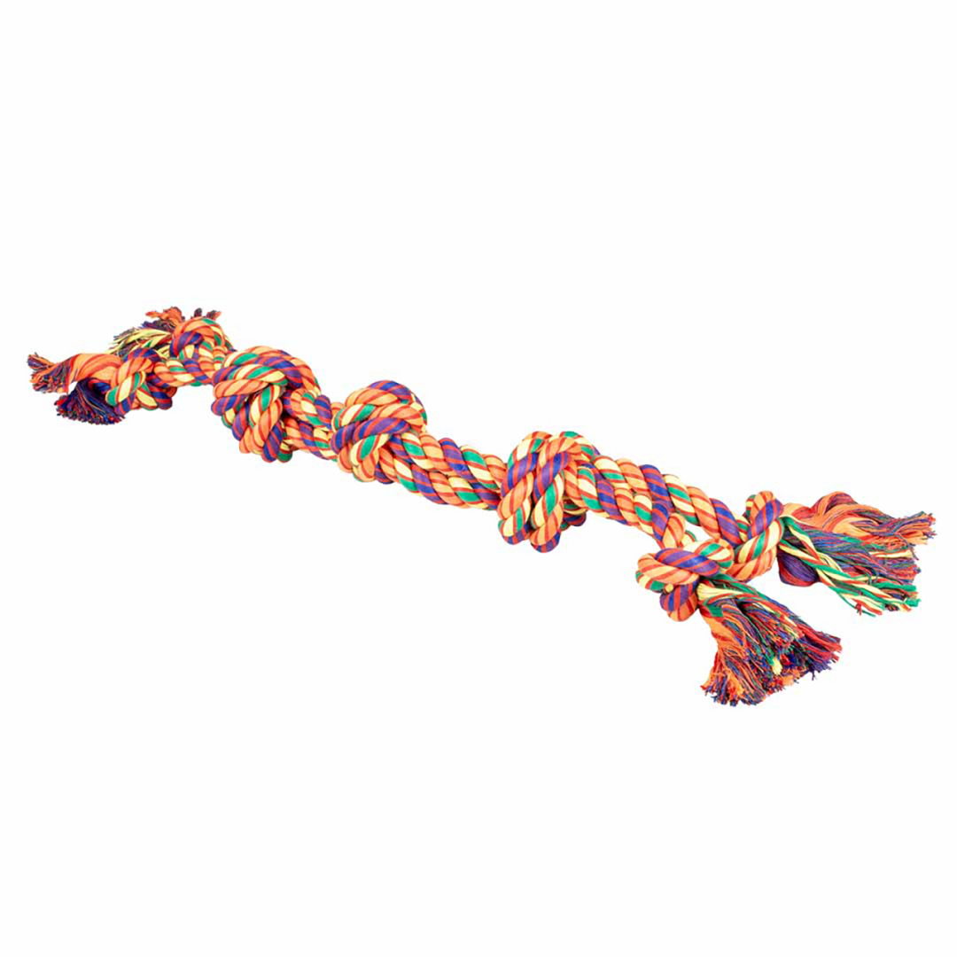 Dit kleurrijke touw van Duvo+ is speciaal ontworpen om jouw hond urenlang speelplezier te bieden. De knopen zorgen voor extra grip tijdens het trekken en spelen, terwijl het stevige materiaal ervoor zorgt dat het speeltje lang meegaat. Bovendien helpt het katoenen touw bij het schoonhouden van het gebit van je hond door de natuurlijke flossende werking van de vezels.