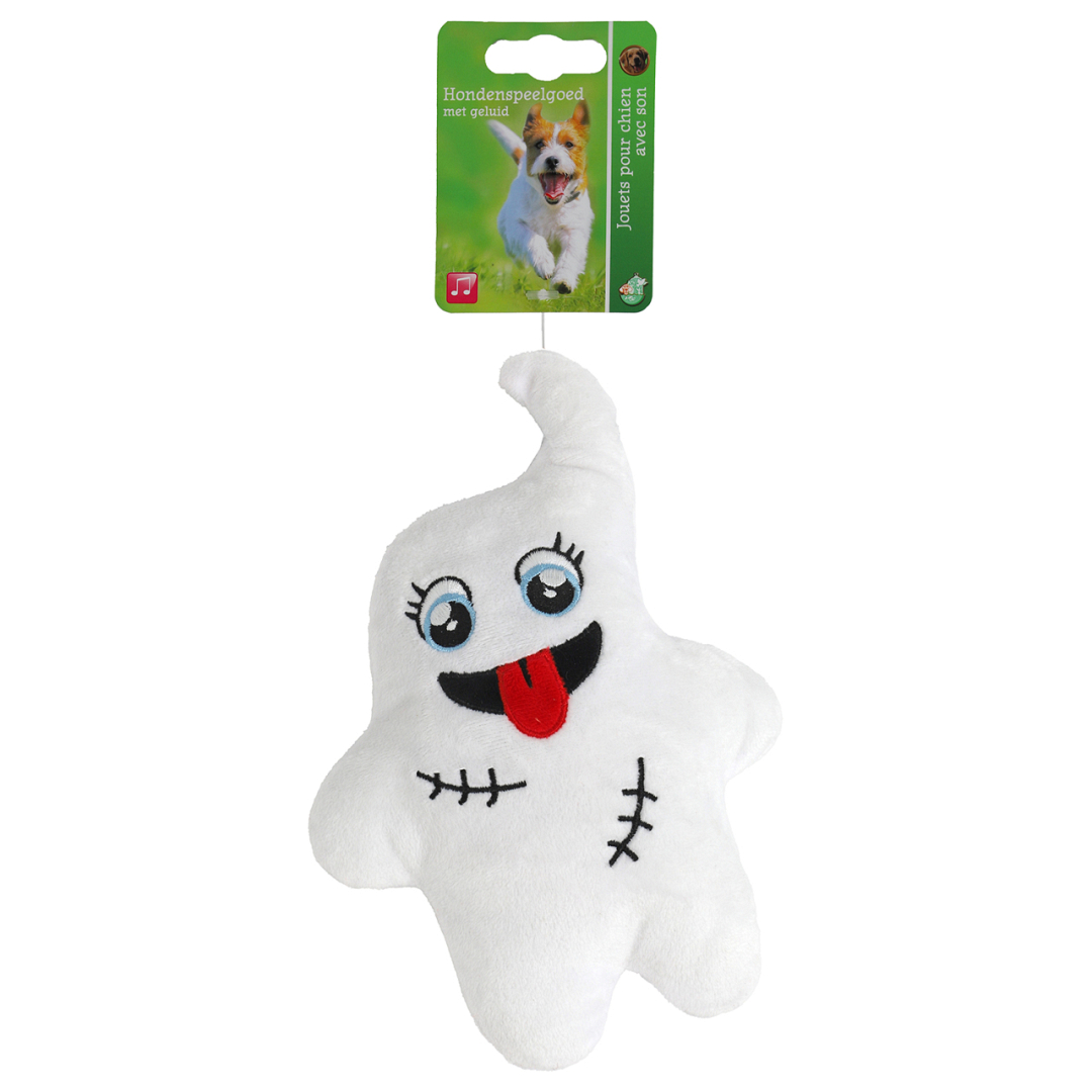 Geef je hond een spookachtig leuke Halloween met dit pluchen hondenspeeltje in de vorm van een griezelig wit spook! Dit zachte en schattige speeltje, voorzien van een pieper, zorgt voor urenlang griezelplezier. Perfect voor de halloweenliefhebber die zijn viervoeter ook wil laten genieten van de feestelijke sfeer. Het schattige witte spookontwerp maakt dit speeltje ideaal voor halloweenpret. Het ingebouwde piepje stimuleert het natuurlijke speelinstinct van je hond en zorgt voor extra interactie. Gemaakt van hoogwaardig pluche dat comfortabel is voor je hond om mee te spelen en te knuffelen. Lichtgewicht en ideaal voor honden van verschillende groottes, geschikt voor zowel binnen als buiten spelen.