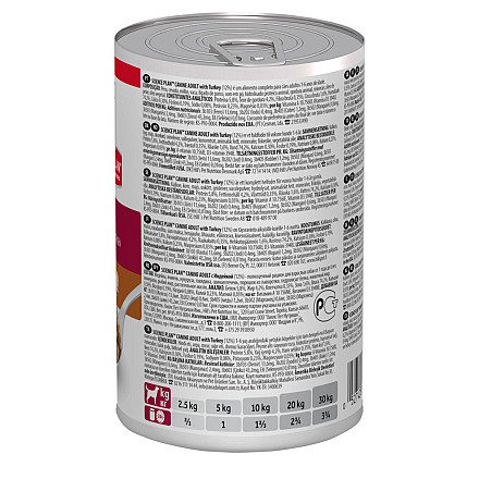 Je hond zal dol zijn op Hill's Adult Turkey vanwege de zachte en gladde textuur. Dit hondenvoer heeft de perfecte balans tussen smaak en voeding, om het ideale lichaamsgewicht te ondersteunen van volwassen honden van 1 tot 6 jaar oud.