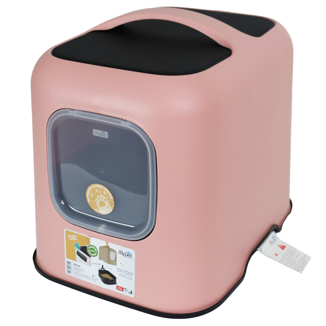 De flap en de onderbak zijn voorzien van een kleine magneet, waardoor de flap altijd netjes terugvalt op zijn plaats. dit zorgt ervoor dat er ook geen onaangename geurtjes kunnen ontsnappen uit het toilet. De kattenbak is voorzien van een geurfilter en een kattenbakschep die diep genoeg is om de uitwerpselen van jouw kat netjes te kunnen opruimen.