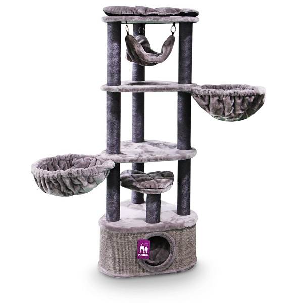 Stabiel krabmeubel met slaapruimte, hangmat en verwijderbaar kussen. Geschikt als hoekmodel. Afm. 60 x 60 x 160 cm.